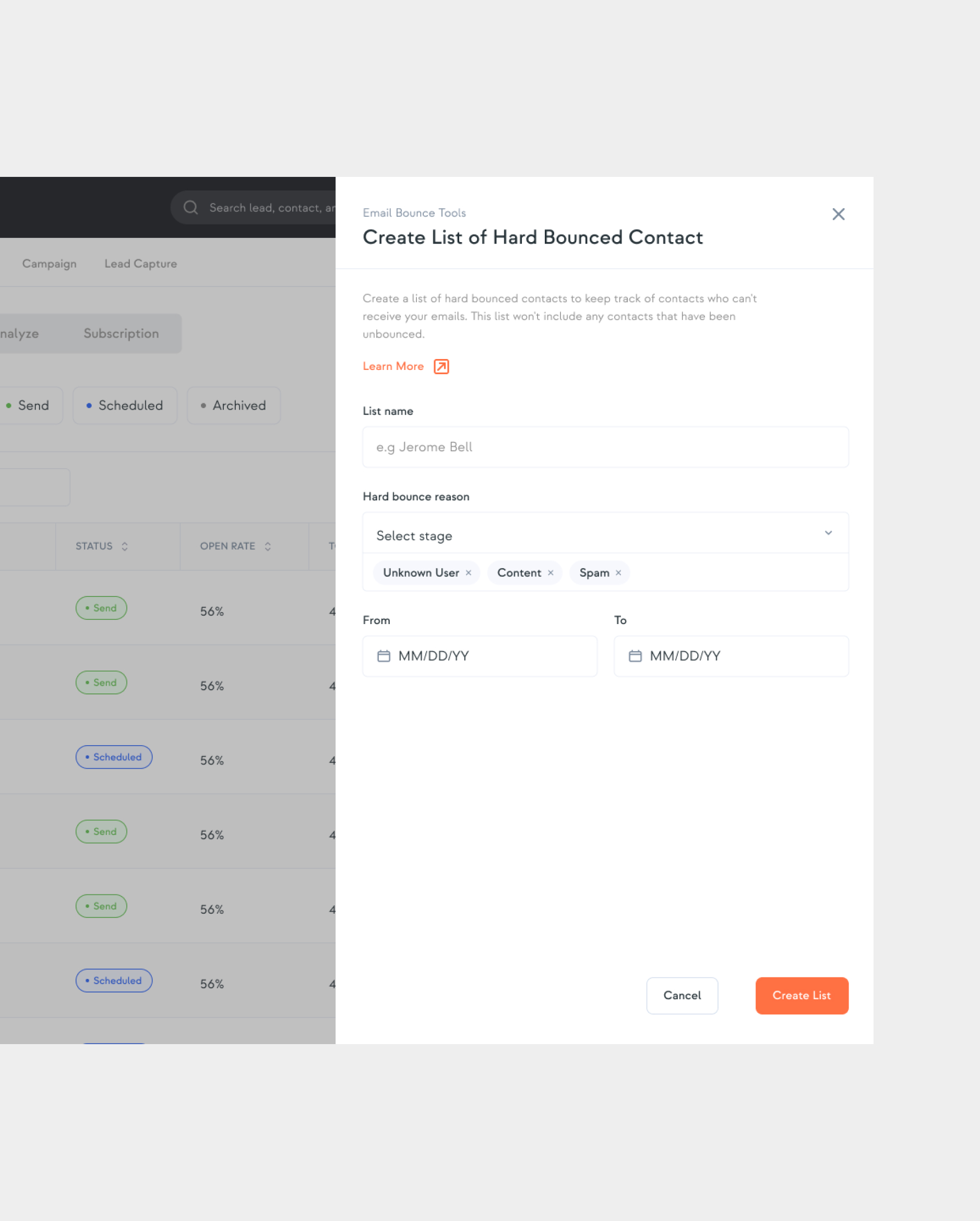 Scheduling email — Take control of your email campaigns with our 'Setting & Scheduling' feature within the Email Builder. Customize delivery settings, choose optimal send times, and even automate follow-ups seamlessly.
